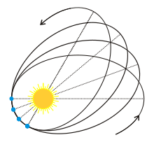 Aus irdischer Sicht scheint die Sonne im Laufe eines Jahres die Sternbilder der Ekliptik zu durchwandern, nach denen auch die zwölf Tierkreiszeichen benannt sind. Diese Bewegung der Sonne um die Erde bezeichnet man als scheinbare geozentrische Bahn.