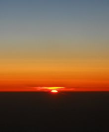 - etwa 0,6 Grad (34′ bis 39′) für horizontal einfallende Lichtstrahlen – also beim Auf- oder Untergang eines Gestirns,