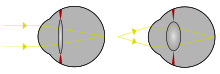Schließlich können auch zwei verschiedene Augen existieren, von denen das eine optisch für die Nähe und das andere für die Ferne eingestellt ist. Ein Beispiel hierfür findet sich bei den seitlichen und mittleren Augen von Spinnen. Das gleiche Konzept existiert auch bei den rücken- bzw. bauchwärtigen Facettenaugen des Taumelkäfers, wobei erstere für das Sehen an der Luft und letztere für das Sehen im Wasser benutzt werden.