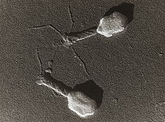 ![]() TEM-Aufnahme zweier Virionen des Escherichia-Phagen T4 | ||||||||||||||||||||||