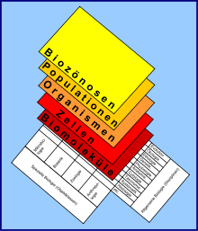 Im Folgenden wird ein Überblick über die verschiedenen Hierarchie-Ebenen und die zugehörigen Gegenstände der Biologie gegeben. In seiner Einteilung orientiert er sich an der Abbildung. Beispielhaft sind Fachgebiete aufgeführt, die vornehmlich die jeweilige Ebene betrachten.