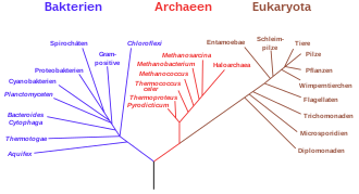 Auf der Grundlage der phylogenetischen Entwicklung ordnet die biologische Taxonomie alle Lebewesen in ein Schema ein. Die Gesamtheit aller Organismen wird in drei Gruppen, die Domänen, unterteilt, welche wiederum weiter untergliedert werden: