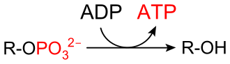 Bei der Substratkettenphosphorylierung überträgt ein phosphoryliertes Zwischenprodukt seine Phosphorylgruppe (anorganisches Phosphat) auf ADP. Da das Gruppenübertragungspotential von ATP geringer ist als das des Zwischenproduktes, findet die Reaktion in eine Richtung statt.