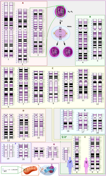 Sowohl in der Botanik wie auch in der Zoologie spielt die Untersuchung des Karyotyps eine Rolle in der taxonomischen und phylogenetischen Forschung. Bei Pflanzen kann die Karyotypanalyse Einblicke in bestimmte Mechanismen der Artbildung etwa durch Polyploidisierung ermöglichen; bei Tieren gibt der Karyotyp nicht selten Hinweise auf evolutive Prozesse. So haben beispielsweise alle großen Menschenaffen (Hominidae) außer dem Menschen selbst einen Karyotyp mit 2n = 48 Chromosomen.[1] Detailuntersuchungen zeigten, dass das menschliche Chromosom 2 aus einer Fusion entstand (siehe Artikel Chromosom, Abschnitt Chromosomenevolution).