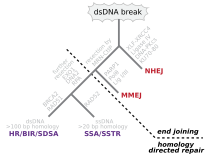 Nicht-homologe Reparatur erfolgt ohne Verwendung einer homologen Vorlage. Zu unterscheiden sind Non-homologous end-joining (NHEJ) und Microhomology-mediated end-joining (MMEJ) – manchmal auch alternative- oder backup-NHEJ genannt.