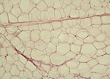 Eine Sonderform des lockeren Bindegewebes ist das Fettgewebe. Im Gegensatz zu anderen Bindegewebstypen ist beim Fettgewebe kaum Interzellulärsubstanz vorhanden. Die spezialisierten Zellen heißen Adipozyten und speichern in ihrem Zytoplasma große Mengen an Fett.