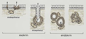 Inkretorische Drüsen (auch endokrine Drüsen oder Hormondrüsen genannt) entwickeln sich wie exkretorische Drüsen ausgehend vom Oberflächenepithel, allerdings geht hier die Verbindung im weiteren Entwicklungsverlauf verloren, so dass kein Ausführungsgang besteht. Inkretorische Drüsen (von dem Anatom und Physiologen Johannes Müller als Blutgefäßdrüsen, kurz Blutdrüsen, beschrieben) geben ihr Sekret (auch Inkret genannt) deshalb in den Extrazellularraum ab. Hormone gelangen von dort aus per Diffusion in den Blutkreislauf. Die Gesamtheit dieser „innersekretorischen“ Drüsen (zum Beispiel Schilddrüse und Bauchspeicheldrüse) wird als endokrines System bezeichnet.