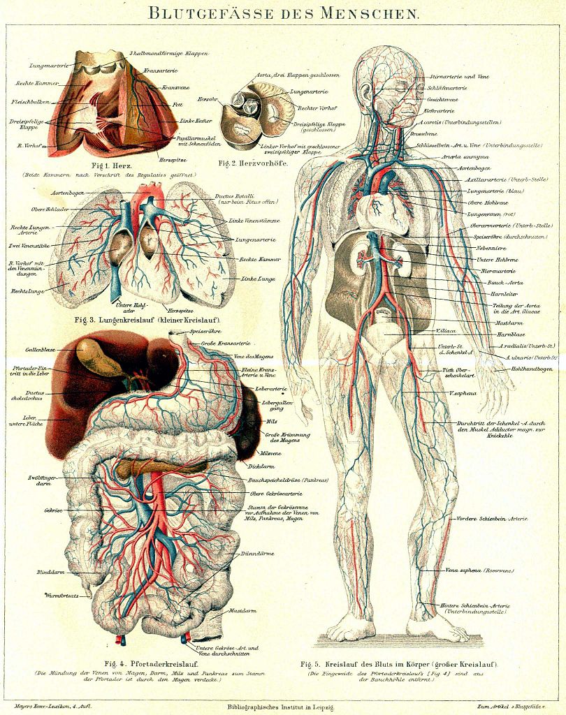 Tafel: Blutgefäße des Menschen zum Artikel „Blutgefäße“, Original-Bildunterschriften: