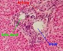 Die Gallenkapillaren sind innerhalb der Leberläppchen nur Vertiefungen der Leberzellen, erst nach dem Austritt aus den Läppchen bekommen sie eine eigene Wand und werden zu den Gallengängen mit einem einschichtig-prismatischen Epithel. Aus den kleinen Gallengängen eines Portalfeldes fließt die Galle über größere Gallengänge aus der Leber.