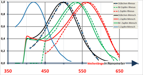 | Mensch | - | 420 nm | 530 nm | 560 nm | 500 nm |
