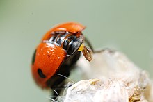 Bei Insekten werden die Abfallstoffe des Stoffwechsels mittels eines Systems Malpighischer Gefäße ausgeschieden.[35] Die auszuscheidenden Substanzen diffundieren oder werden aktiv in die Gefäße transportiert und von diesen in den Enddarm geleitet. Dort erfolgt dann der Entzug von Wasser und Ionen. Die restlichen Exkrete werden dann zusammen mit den Fäkalien ausgeschieden.[2]
