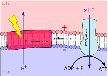 Die phototrophe ATP-Synthese (Photophosphorylierung) mit Hilfe von Bacteriorhodopsin, Proteorhodopsin oder Xanthorhodopsin verläuft ebenfalls chemiosmotisch. Ein Rhodopsin besteht aus einem Protein, das eine ganze Biomembran durchspannt (Transmembranprotein). In dem Eiweiß befindet sich ein Molekül namens Retinal.