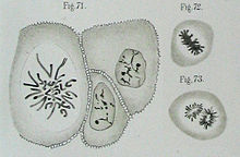 1873 beschrieb Anton Schneider an Plattwürmern, dass der Zellkern sich „in einen Haufen feinlockig gekrümmter, auf Zusatz von Essigsäure sichtbar werdender Fäden verwandelt. An Stelle dieser dünnen Fäden traten endlich dicke Stränge auf, zuerst unregelmäßig, dann zu einer Rosette angeordnet, welche in einer durch den Mittelpunkt der Kugel gehenden Ebene (Äquatorialebene) liegt.“ Die „indirekte Kernteilung“ (Mitose) war entdeckt – aber noch nicht verstanden. So ging Walther Flemming 1882 noch davon aus, dass sich die „Kernfäden“ erst während der frühen Phase der Kernteilung aus einem zuvor durchgehenden Faden voneinander trennen. Zwar beobachtete er eine Längsspaltung der Chromosomen zu einem späteren Zeitpunkt (heute als Metaphase bezeichnet), nahm aber an, dass sich ganze Chromosomen (also mit beiden Chromatiden) später (heute: Anaphase) in Richtung der künftigen Zellkerne bewegen. Auch schloss er nicht aus, dass sich Zellkerne zumindest in manchen Fällen auch neu bilden könnten, also nicht durch Teilung aus bestehenden Kernen. 1884 beschrieben dann mehrere Autoren (L. Guignard, Emil Heuser und Edouard van Beneden) die Aufteilung der Chromosomenhälften (heute: Chromatiden) auf die Tochterzellkerne.