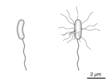 - peritrich: Viele Flagellen sind gleichmäßig über die Zelloberfläche verstreut.