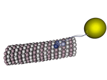 Mit den Mikrotubuli sind zahlreiche Proteine assoziiert, sogenannte MAPs (microtubule associated proteins). Die bekanntesten sind Motorproteine wie Dynein und Kinesin. Einige MAPs können anscheinend Mikrotubuli stabilisieren. MAPs können Mikrotubuli zu größeren Strukturen verbinden. Zu nennen sind hier insbesondere die Axoneme, Achsfäden beweglicher Zellanhänge: der motilen Zilien und der eukariotischen Flagellen (Geißeln). Ein Axonem ist ein Bündel, in dem neun Doppeltubuli zwei einzelne im Zentrum umgeben; man spricht von einer (9×2 + 2)-Struktur (siehe Abbildung). Die Doppeltubuli haben einen asymmetrischen Querschnitt, in dem ein vollständiger „A-Tubus“ mit einem unvollständigen „B-Tubus“ verschmilzt.