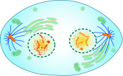 Im Anschluss an die Mitose als Kernteilung muss jedoch nicht in jedem Fall eine Zellteilung stattfinden, die Zytokinese als Teilung in Tochterzellen zählt nicht zur eigentlichen Mitose.