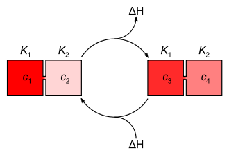 Jedem Konzentrationsgefälle entspricht ein Energiepotential ΔH, das sich aus der Differenz der Lösungs-Enthalpien bzw. der Steilheit eines Proton-Konzentrationsgefälles und im Falle von Protonengradienten auch aus der Neutralisationsenergie ergibt. Beim Konzentrationsausgleich zwischen den Bereichen unterschiedlichen pH-Werts wird Energie frei (exotherme Reaktion), die durch energetische Kopplung genutzt werden kann.