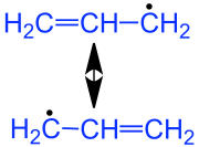 Mesomeriestabilisiertes Allylradikal. Die Allylgruppe ist blau markiert. |