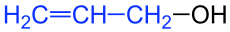 Allylgruppe in Allylalkohol. Die Allylgruppe ist blau markiert. |