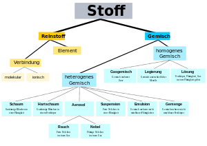 | Umfasst nach chemischer Definition | Reinstoffe (Verbindungen, Elemente) |