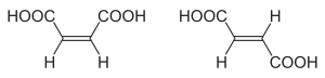 Ein Beispiel für (Z)-(E)-Isomerie ist das Isomerenpaar (Z)-Butendisäure (Maleinsäure) und (E)-Butendisäure (Fumarsäure).