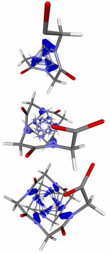 Angezeigt werden auch die Wasserstoffbrücken, berechnet nach dem DSSP-Algorithmus.