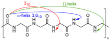 Die Helices von α-Helix, π-Helix, 310-Helix zeigen folgende Wasserstoffbrückenbindungen auf: