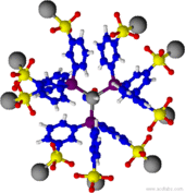In einer Prozessvariante der Hydroformylierung, dem Ruhrchemie-Rhone-Poulenc-Verfahren, wird die Abtrennung des Katalysators durch einen Rhodium-Triphenylphosphantrisulfonat-Komplex (TPPTS) erreicht. Durch den sulfonierten Liganden verbleibt der Katalysator in der wässrigen Phase, während das Produkt des Prozesses, das aus Propen, Wasserstoff und Kohlenmonoxid hergestellte n-Butanal eine organische Phase bildet.