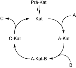 - Komplexbildung eines Substrats mit dem Katalysator (A-Kat + B → A-Kat-B)