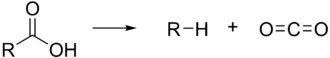 Als Decarboxylierung bezeichnet man eine chemische Reaktion, bei der aus einem Molekül ein Kohlenstoffdioxid-Molekül abgespalten wird. Durch Erhitzen oder durch enzymatische Katalyse kann eine Decarboxylierung besonders leicht bei Carbonsäuren (bevorzugt: β-Ketosäuren oder Malonsäuren) erfolgen. Dabei tritt ein sechsgliedriger Übergangszustand auf.