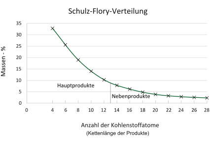 Bei der Oligomerisierung von Ethen zu längeren α–Olefinen werden einige technische Verfahren realisiert, deren Produktgemische einer Schulz-Flory-Verteilung zu Grunde liegen.