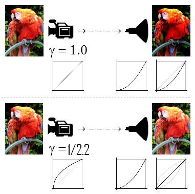 Damit im weiteren Produktionsweg keine Helligkeitsinformationen verloren gehen oder aber überbetont dargestellt werden, hat jedes Gerät, das eine nichtlineare Übertragungsfunktion besitzt, die Möglichkeit einer Gammakorrektur zur Linearisierung der Abbildungsleistung.