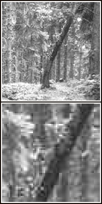 In der optischen Wahrnehmung des Menschen werden Farben weniger stark aufgelöst als Helligkeitsänderungen, daraus leitet sich die schon beim analogen Farbfernsehen bekannte YUV-422 Reduzierung ab. Kanten sind dagegen bedeutsamer, und es existiert eine biologische Kontrastanhebung (Machsche Streifen). Mit moderater Tiefpassfilterung zur Farbreduktion, zum Beispiel durch den auf DCT-Transformation basierenden JPEG-Algorithmus oder den neueren auf Wavelet-Transformation basierenden JPEG2000-Algorithmus, lässt sich die Datenmenge meist auf 10 % oder weniger der ursprünglichen Datenmenge reduzieren, ohne deutliche Qualitätsverringerungen.