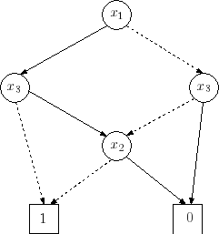 Ein binäres Entscheidungsdiagramm ist ein azyklischer, gerichteter Graph