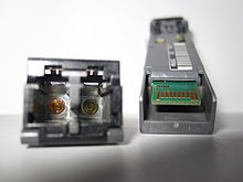 - InfiniBand ist ein bereits seit 1999 spezifiziertes schnelles Hochleistungsverfahren zur Überbrückung kurzer Strecken (über Kupferkabel bis zu 15 m). Es nutzt bidirektionale Punkt-zu-Punkt-Verbindungen zur kostengünstigen und latenzarmen Datenübertragung (unter 2 µs) und schafft pro Kanal theoretische Datenübertragungsraten von bis zu 2,5 Gbit/s in beide Richtungen und in der neueren DDR-Variante 5 Gbit/s. Bei InfiniBand können mehrere Kanäle transparent gebündelt werden, wobei dann ein gemeinsames Kabel verwendet wird. Üblich sind vier Kanäle (4×) also 10 Gbit/s bzw. 20 Gbit/s. Haupteinsatzgebiet sind Supercomputer (HPC-Cluster).