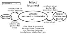 Veranschaulichung der Kommunikation zwischen Webbrowser und Webserver innerhalb des lokalen Rechners