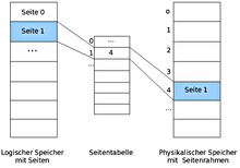 Die von einem Programm generierten Speicheradressen werden virtuelle Adressen genannt und bilden den virtuellen Adressraum. Die virtuellen Adressen gehen nun nicht direkt an den Speicherbus, sondern an die Memory Management Unit (MMU, dt. Speicherverwaltungseinheit), welche die virtuellen Adressen auf die physischen Adressen abbildet.