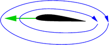 Ein Tragflächenprofil, das ein Medium mit einem geeigneten Anstellwinkel durchquert, schiebt das Medium nicht nur zur Seite. Zusätzlich wird das Medium tangential zur Bewegung beschleunigt. Auf der Unterseite erfolgt eine leichte Beschleunigung in Richtung der Bewegung wie bei einer Bugwelle. Viel stärker ist auf der Oberseite des Profils eine Beschleunigung gegen die Bewegungsrichtung, also nach hinten.
