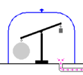 Dasymeter im Vakuum: Wegen des fehlenden Auftriebs sind die beiden Körper ungleicher Dichte nicht mehr im Gleichgewicht -