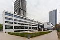Beim Rheinhochwasser 1993 schwamm der im Rohbau befindliche Schürmann-Bau (im Vordergrund) im gestiegenen Grundwasser auf, das Gebäude hob sich stellenweise bis zu 70 Zentimeter.