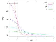 Das Verhältnis der Wirbelstärke zu ihrem Maximum bei gegebenem Radius r (grüne Kurve im Bild) ist demnach: