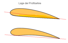 In der Grafik sieht man im oberen Bild die Profilsehne als rote Linie eingezeichnet.