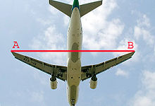 Entfernung zwischen den äußersten Enden des Tagflügels, parallel zur Querachse des Flugzeuges.