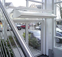 Bei Luftschleieranlagen kann der Schleier gleichmäßig über die gesamte Breite der Anlage verteilt werden, indem man den Luftstrom durch einen engen Spalt lenkt.