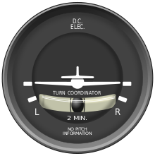 Je nach Kreiselpräzessionsrate neigt sich dabei das Flugzeugsymbol des Wendekoordinators nach links oder rechts. Je schneller die Winkelgeschwindigkeit ist, desto größer sind auch die Kreiselpräzession und die Querneigung des Flugzeugsymbols.