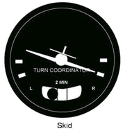Es ist sinnvoll, dass diese beiden Instrumente zusammengefasst worden sind. Beide zusammen sagen etwas über das Kurvenverhalten aus. Wie aus den nebenstehenden Grafiken ersichtlich ist, kann bei gleicher Kurvengeschwindigkeit um die Längsachse (Flugzeugsymbol nach rechts geneigt) entweder eine koordinierte Kurve oder aber ein Slip (Libellenball in diesem Beispiel rechts) oder Skid (Libellenball in diesem Beispiel links) geflogen werden. Dieses führt dann bei Nichtbeachtung evtl. zu einem Spiralsturz (engl. spiral).