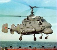 Eingesetzt wurde die Maschine auf den großen Überwasserkampfschiffen aller sowjetischen Flotten. Ein Export erfolgte nach Bulgarien, Jugoslawien, Indien, Vietnam und Syrien. Die Ka-25 ist durch die Ka-27/ Ka-32 ersetzt worden. Type: Ka-25 'Hormone' Funktion: Mehrzweckhubschrauber Jahr: 1965 Besatzung: 5 Triebwerk: 2 × 900hp Glushenko GTD-3 Geschwindigkeit: 193 km/h Gipfelhöhe: 3 350 m Reichweite: 650 km Bewaffnung:Raketen, Torpedos | ||||||||||||||||||||||||||||||||