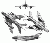 01.02.1950 Jagdflugzeug; Fresco A; C; D Weiterentwicklung aus der MiG-15 bis, unter Beibehaltung des konstruktiven Aufbaues. Erst mit dem neuen Triebwerk WK-1F (Nachbrenner) kamen die erhofften Leistungen. Lizenzfertigung in Polen(Lim-5), China (J-5). Etwa 6 000 Maschinen aller Versionen wurden gebaut und in über 22 Staaten eingesetzt. Die MiG-17P war der erste sowjetische Abfangjäger mit Radarausrüstung. Beim Einsatz über Vietnam zeigte sich die Maschine den US-Jägern gewachsen, ihre Kanonen arbeiteten zuverlässiger und effektiver als die damaligen AAM's. Nur im Sturzflug war die Maschine in der Lage die Schallgeschwindigkeit zu erreichen. Typ: MiG-17 F Funktion: Jagdflugzeug Jahr: 1954 Besatzung: 1 Triebwerk: 1 × 3380 kg Klimow WK-1F Geschwindigkeit: 1145km/h Gipfelhöhe: 15 100 m Reichweite: 1 470km Spannweite: 9.63 m Länge: 11.36 m Höhe: 3,80 m Flügelfläche: 22.60 m2 Leermasse: 3 930 kg Max.Startmasse: 6075kg Bewaffnung: 1 × MK 37 mm 2 × MK 23 mm Außenlast: 500 kg; | ||||||||||||||||||||||||