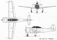 Verwendet wurde die Maschine für Jagdflieger-, Jabo-, Aulklärer- und Bomberschulung. Ha-1OOE-1 Triana Triebwerk: 1 × Sternmotor ENMA B4 Beta von 550 kW. Spannweite 10,40 m; Länge 8,98 m; Höhe 2,90 m; Flügelfläche 17,40 m2. Leermasse 1 886 kg. Abflugmasse max. mit Bombenlast 2 746 kg; Höchstgeschwindigkeit: 444 km/h in 1 000 m Höhe; Steigzeit auf 2 900 m 5 min 52 s; Reichweite max. 1 020 km; Gipfelhöhe 7 950 m. Bewaffnung: 2 × 12,7 mm-MG; 4 × Bomben- und Raketenaufhängungen |