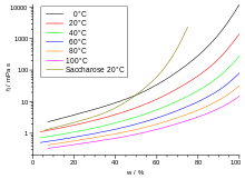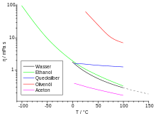 - ↑ Sofern nicht anders vermerkt, beziehen sich die Werte auf die Viskosität bei 20 °C. Millipascalsekunden mPa·s sind identisch mit der früher gebräuchlichen Einheit Centipoise cP.